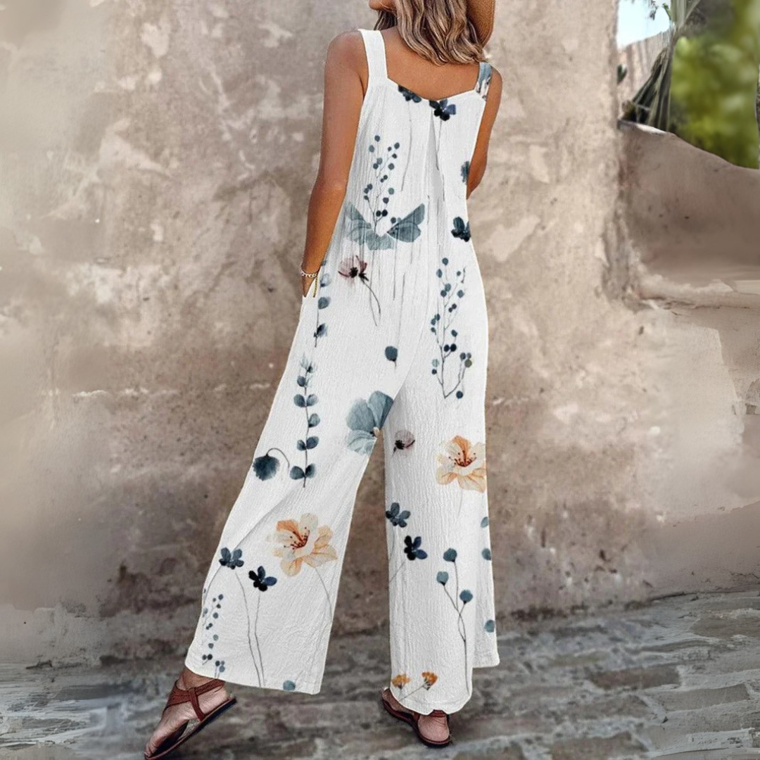 Feel free and comfortable in the Lina Sleeveless Jumpsuit. With a vibrant botanical print and an airy, sleeveless fit, this jumpsuit is the perfect choice for warm days. The soft fabric and relaxed cut create an effortless, elegant look—ideal for a day out or a holiday.
